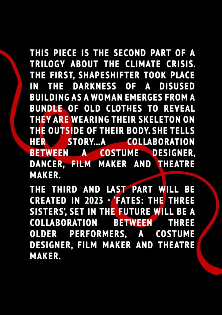 Ariadne’s Thread: A collaboration between a theatre maker, artist and film maker with 31 performers. Exploring the moral dilemma about climate chaos, our personal and collective responsibility.