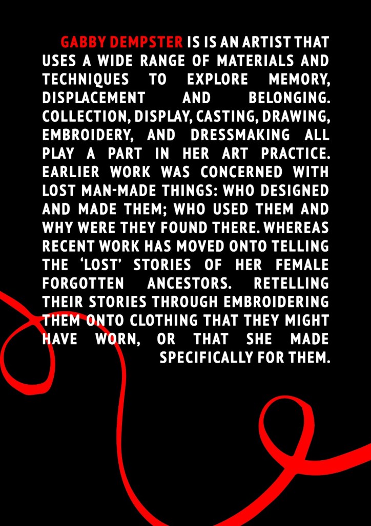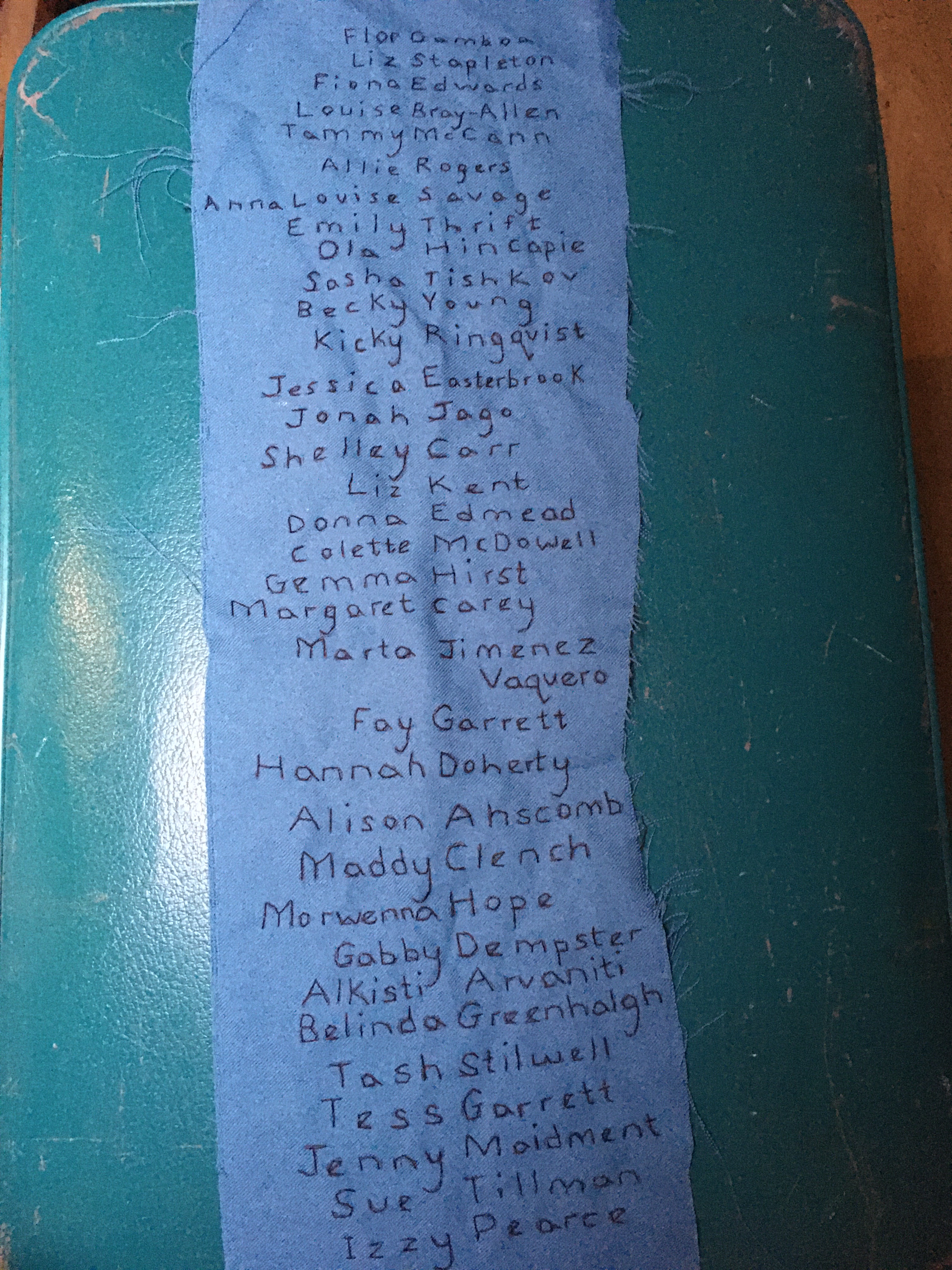 A huge thank you to all who participated – find your name below – embroidered by the wonderful Gabby Dempster.